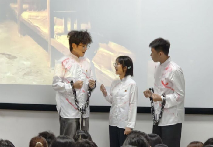 演繹傳薪火,行動踐初心 草院學子通過演繹《百年校史礪初心,青春實干顯擔當》話劇,多維度展現校史中的熠熠閃光。校友江竹筠在渣滓洞堅守信仰、與獄友制作五星紅旗的場景;任正隆教授突破國際基因壁壘、培育“川農小麥”的科研歷程;賈紀原學長“創青春”國家級金獎項目《藏糧于草》的實踐故事。通過藝術化演繹,青年們感悟川農精神的傳承與時代價值,在真情共鳴中堅定理想信念,立志把青春奮斗融入強農興農的生動實踐,讓校史精神在新時代煥發出賡續不息的青春光芒。