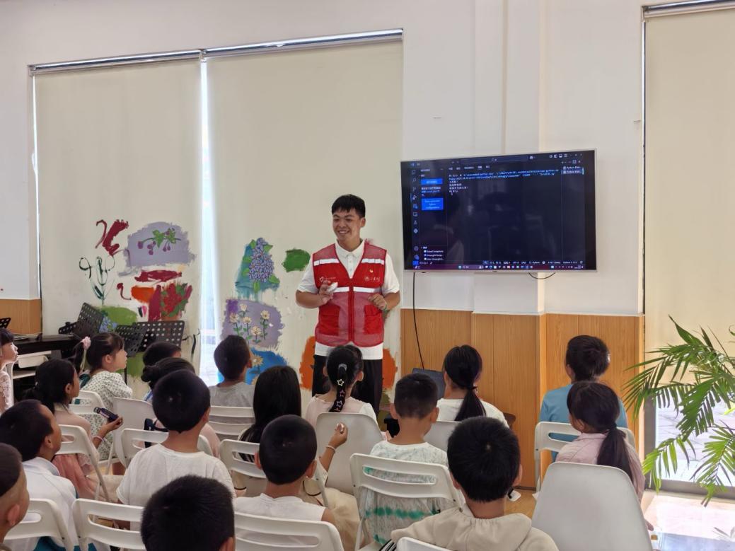 高年級團隊則融合課程所學,自編自演科普劇《機器人小科漫游記》,用生動劇情演繹自動化技術如何守護社區安全。當全體支教隊員與孩子們手挽手共唱隊歌《黔行的路》,清澈的聲浪掠過蒼翠山巒,將儀式推向高潮。